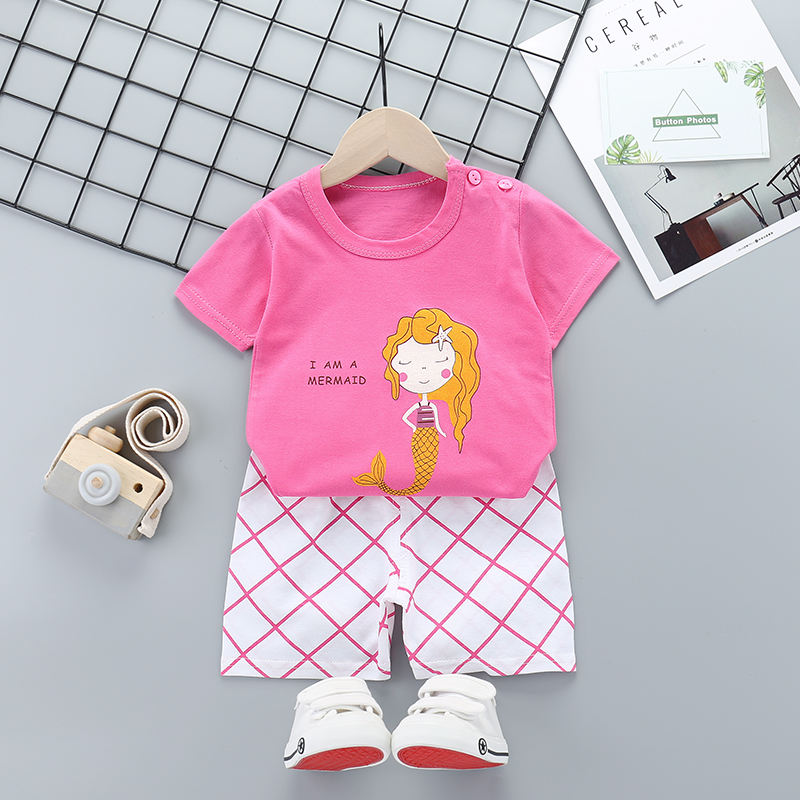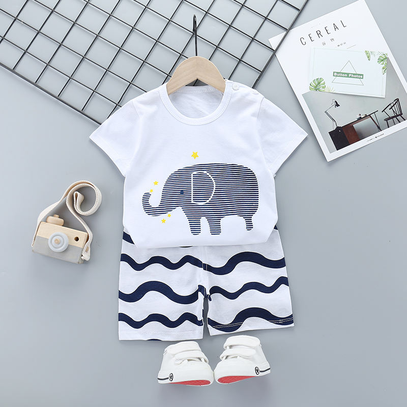 Casual cartoon 100% cotton household pajamas children short sleeve two-piece suit wholesale baby clothes