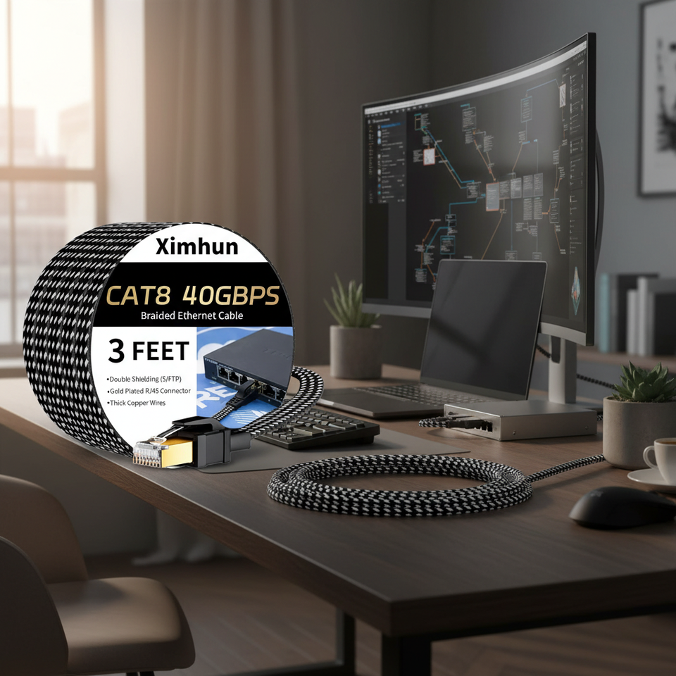Cavo Ethernet Cat 8 ad Alta Velocità 3FT, Cavo di Rete Intrecciato 40Gbps 2000Mhz, Cavo LAN Resistente, Connettore Dati ad Alta Potenza