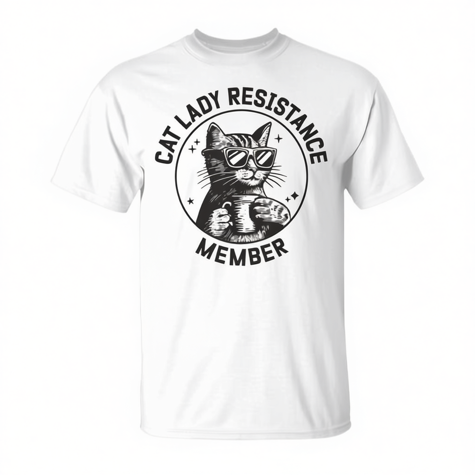 T-shirt Cat Lady Resistance Member, unisex, per adulti, in cotone bianco, girocollo, manica corta, design grafico