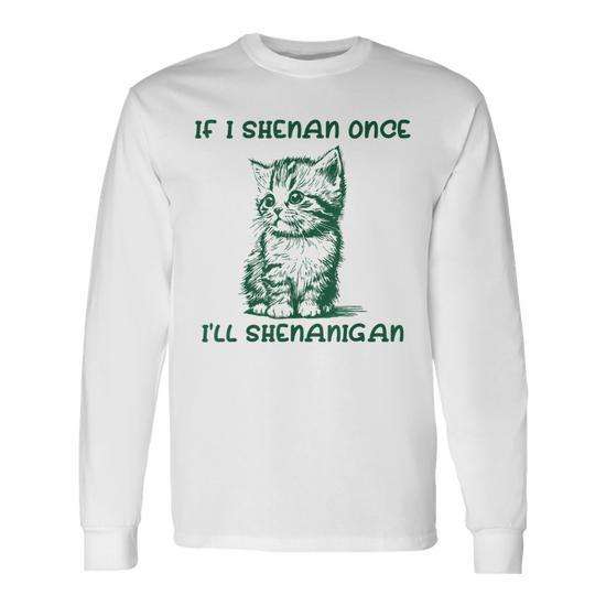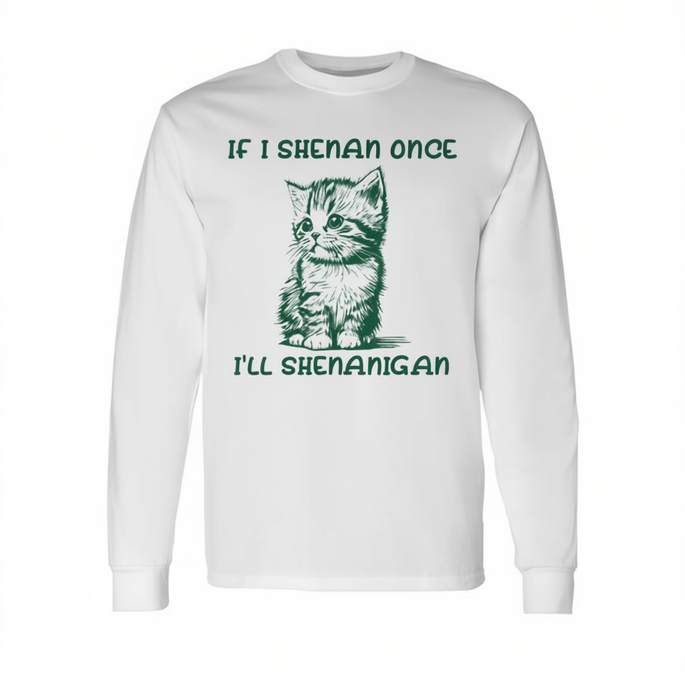 Maglietta a maniche lunghe con stampa grafica If I Shenan Once I'll Shenanigan, abbigliamento unisex
