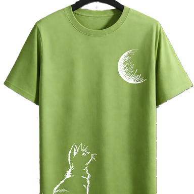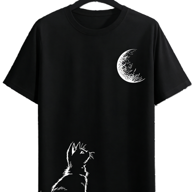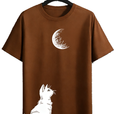 T-shirt Grafica Gatto che Guarda la Luna, Cielo Notturno Celestiale, Maglietta per Amanti degli Animali / T-shirt Oversize in Cotone a Maniche Corte con Gatto e Luna, Streetwear Casual