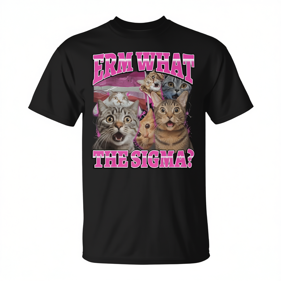 T-shirt per amanti dei gatti con citazione sardonica del meme 'What the Sigma', unisex, per adulti, stampa digitale, manica corta, girocollo