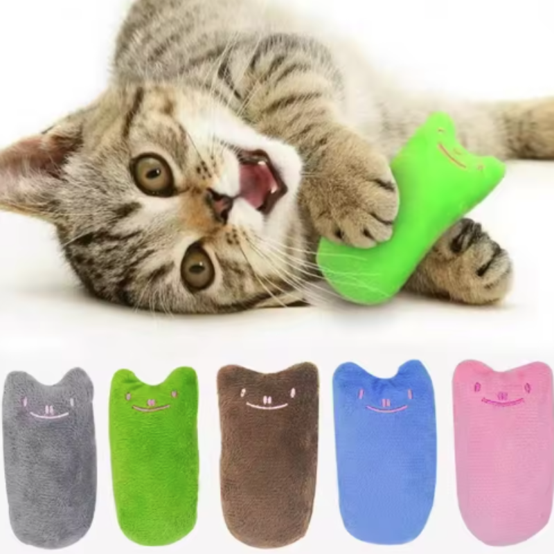 Giocattolo di peluche per gatti, gattino blu peloso con catnip, giocattolo interattivo da masticare per gatti