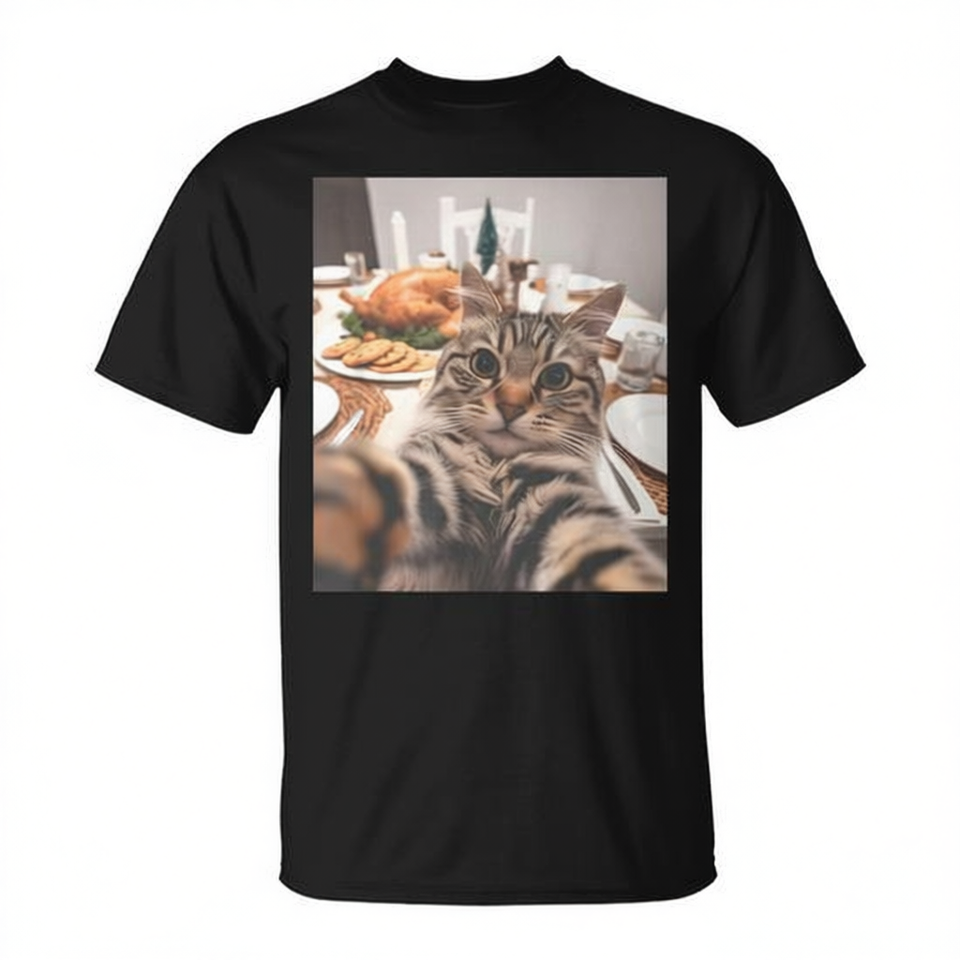 Maglietta con selfie di un gatto e tacchino per la cena del Ringraziamento