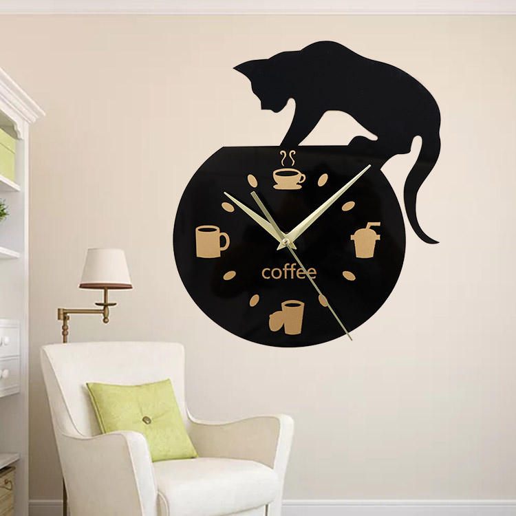 Cat Shaped Cafe Decorated with Hanging Acrylic Wall Clock Modern Decorative Digital Clock