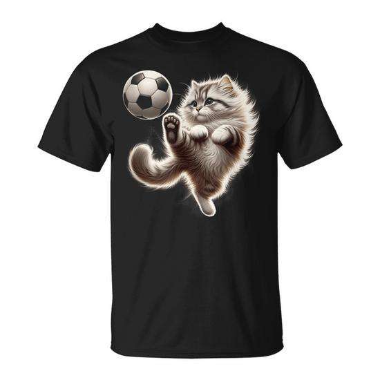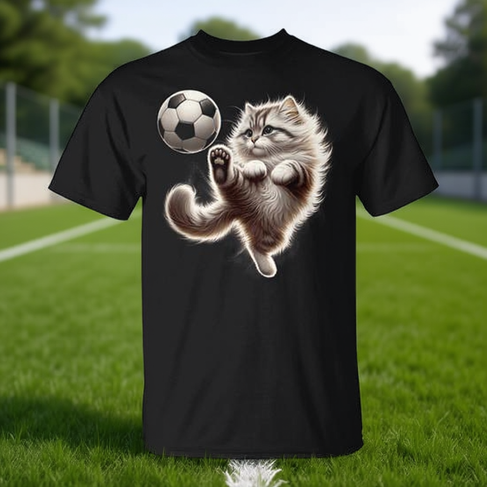Maglietta sportiva con meme del gatto che gioca a calcio