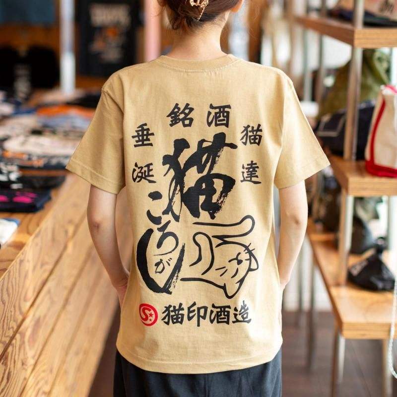 T-shirt con gatto, motivo gatto che gira sul grano, manica corta, unisex, design giapponese con gatto e birrificio di sake