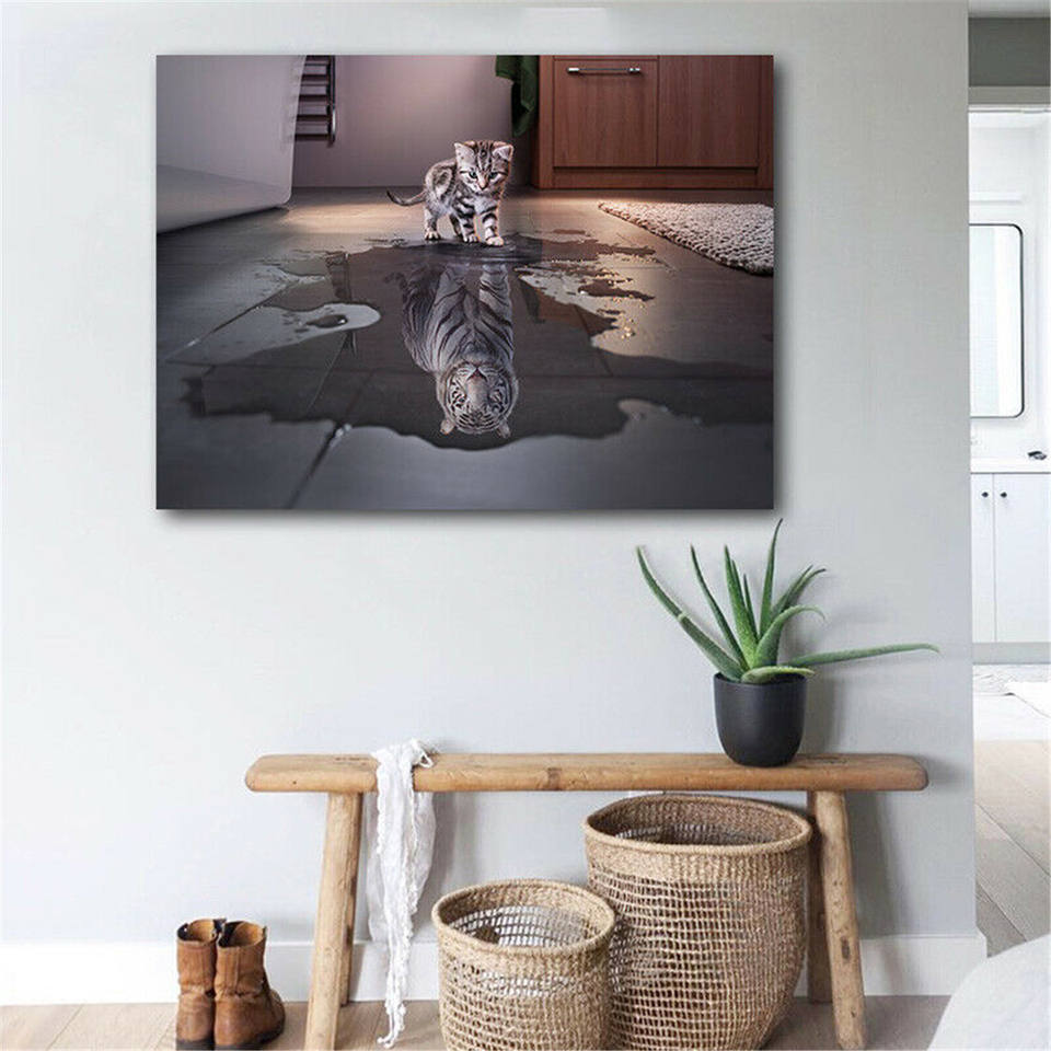 Cat Tiger Reflection Canvas Funny Poster motivazionale Art Print Modern Decor pittura a olio su tela Poster stampa Art Picture