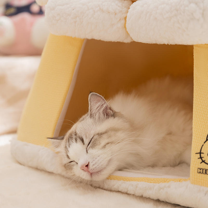 Cat Warm Nest Roller Shutter Closed Cat House Detachable Small and Medium Sized Pet Dog Nest Bed Cave Pet Supplies