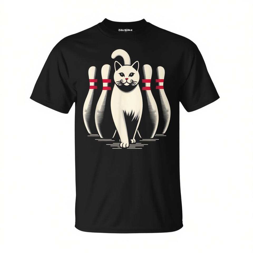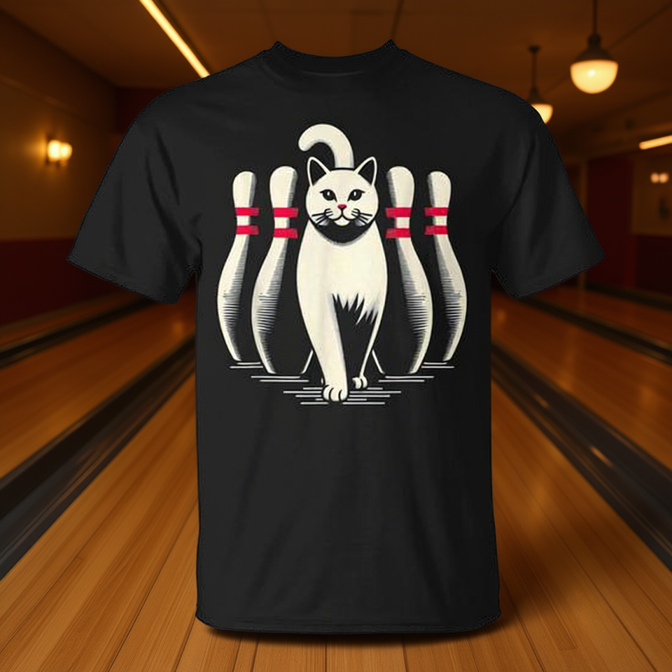 T-shirt bianca con stampa gatto che gioca a bowling, stile retrò vintage
