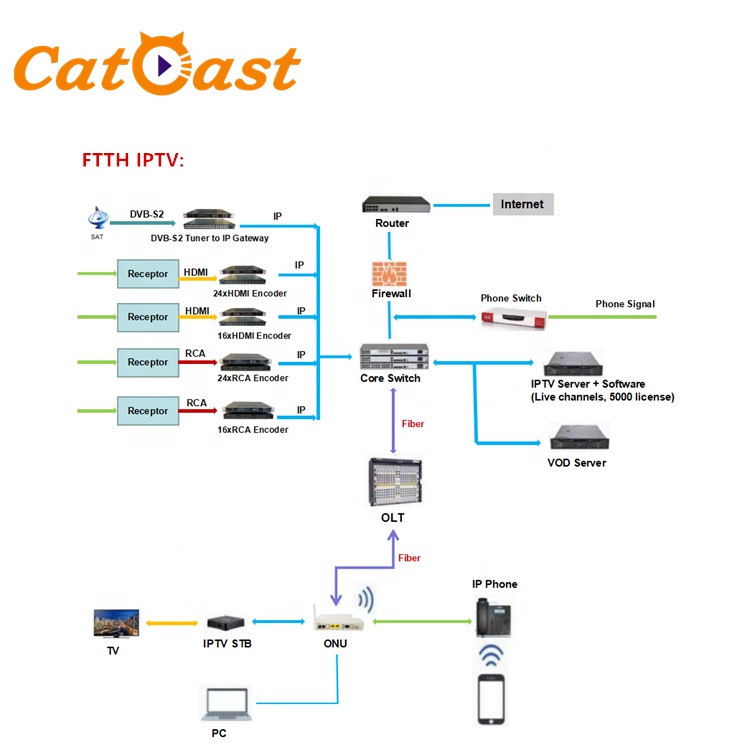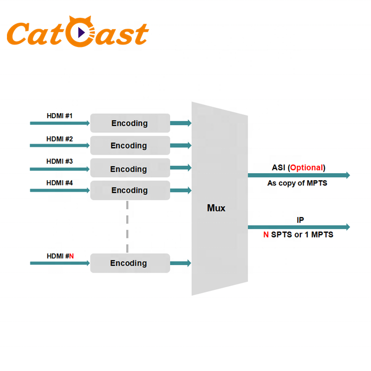 Codificatore Catcast per 24 Canali HD MI/ASI H.264 1080P con Garanzia di 5 Anni per Sistema di Trasmissione da TV via Cavo a IP/ASI
