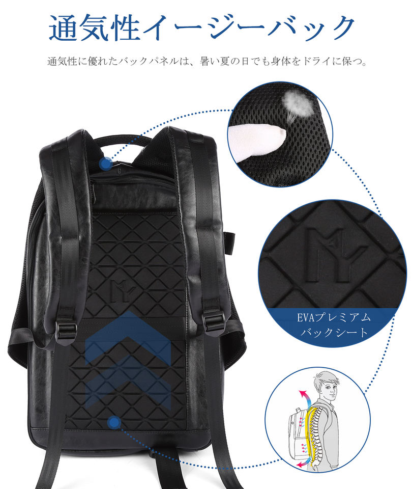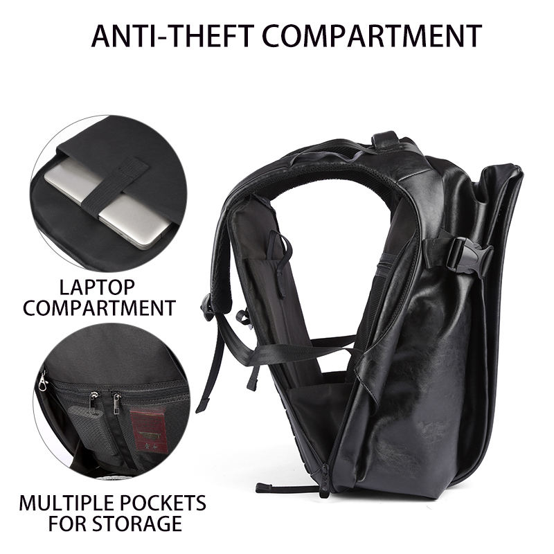 Zaini causale nero impermeabile Mochila antifurto da viaggio laptop PU in pelle zaino borse per uomini Business School
