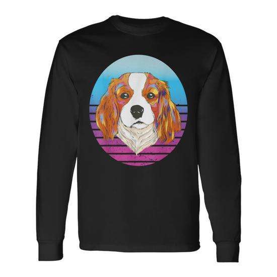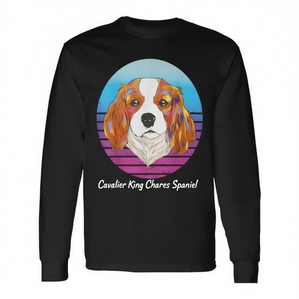 T-shirt a maniche lunghe Cavalier King Charles Spaniel con design ad acquerello, stile simpatico per le mamme di cani