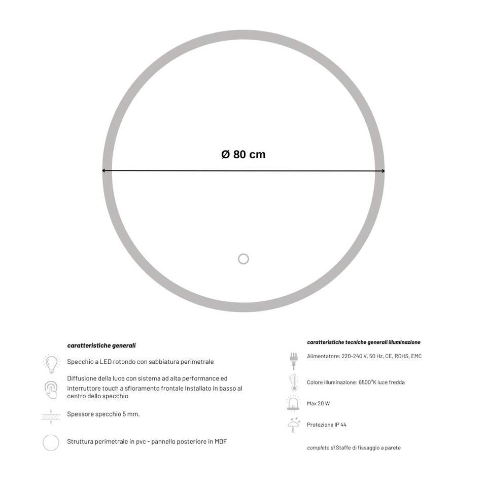 Cefalonia specchio LED rotondo da 80cm con interruttore Touch dimmerabile paralume 2700-45