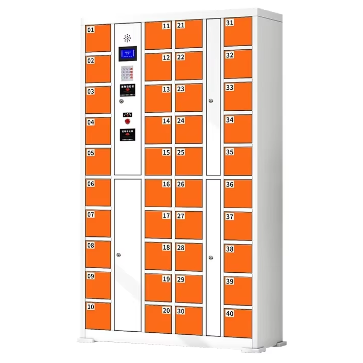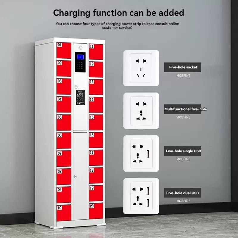Armadio di ricarica per telefoni cellulari con armadietti a pagamento e scomparti di deposito