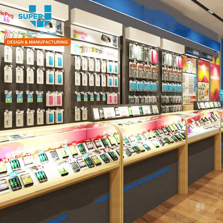 Abbiamo il nostro Telefono Cellulare Showroom Contatore Negozio di Interior Design Del Telefono Mobile di Design Con Display Vetrina pacchetto di legno con pallet, 5 strati della scatola. Ecc.