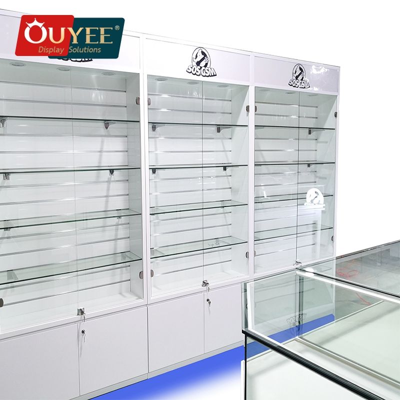 Negozio di cellulari semplice armadio per scaffalature negozio di esposizione telefono vetrina in vetro accessori per custodie per telefoni cellulari scaffale mobile vetrina