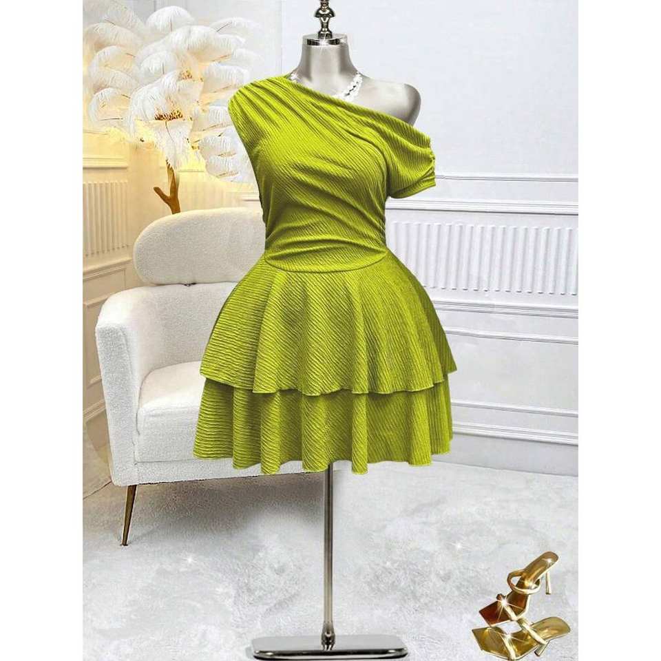 Celure donna Plus Size abito corto tinta unita tessuto Off-spalline Design per festival estivi concerti rave