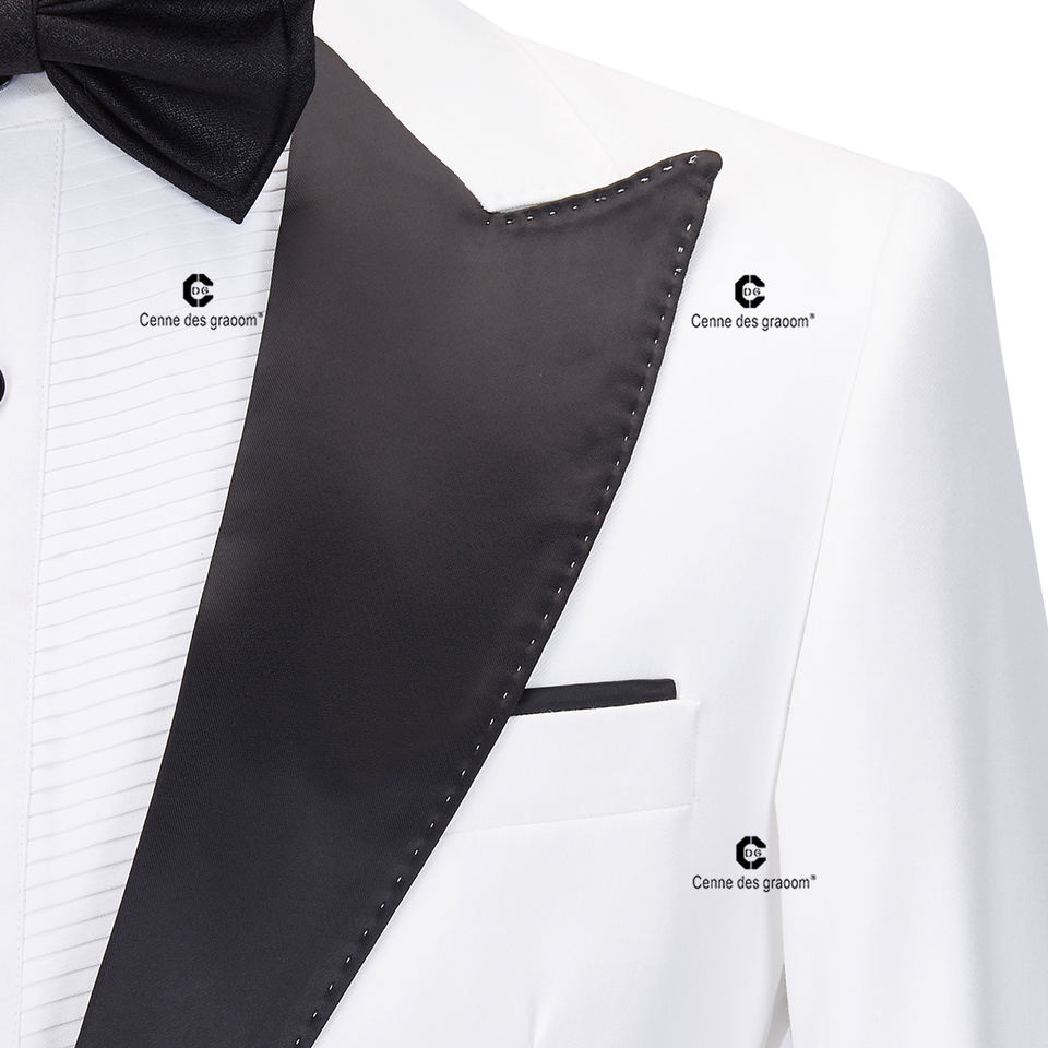 Cenne Des Graoom 2023 Tuxedo abiti da uomo bavero Slim Fit nero e bianco solido con un bottone elegante festa di nozze da sera