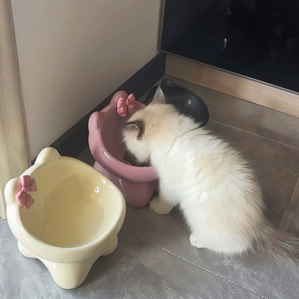 Ciotola per Gatti in Ceramica Adorabile e Creativa con Bordo Inclinato e Gambe Alte per Proteggere il Collo, Ciotola per Cibo per Cani e Gatti di Piccola e Media Taglia