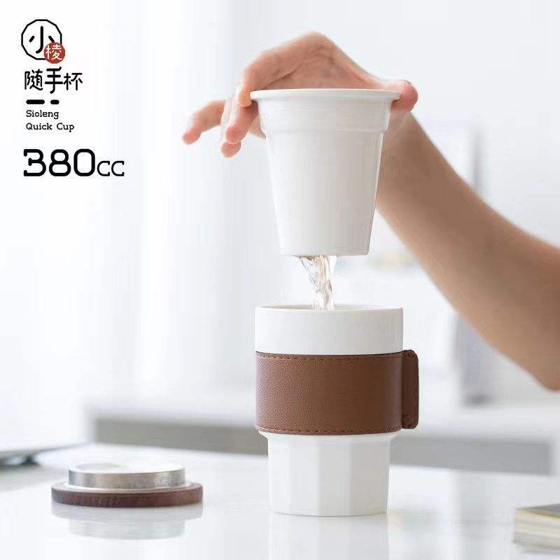Tazza in Ceramica con Filtro Separatore per Tè e Acqua, Bicchiere Minimalista in Stile Cinese, Tazza da Tè Giapponese Lubao