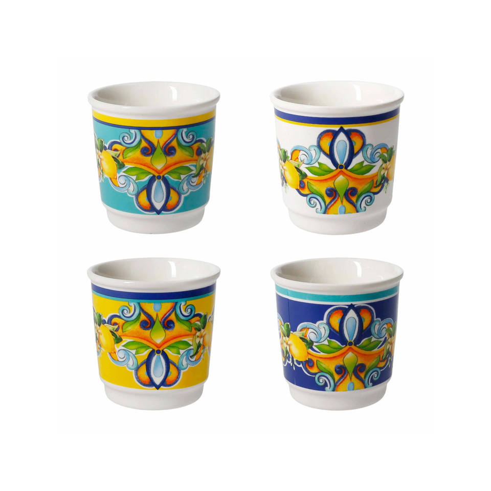 Tazze in Ceramica con Design Agrumi, Colori Assortiti, Set da 4