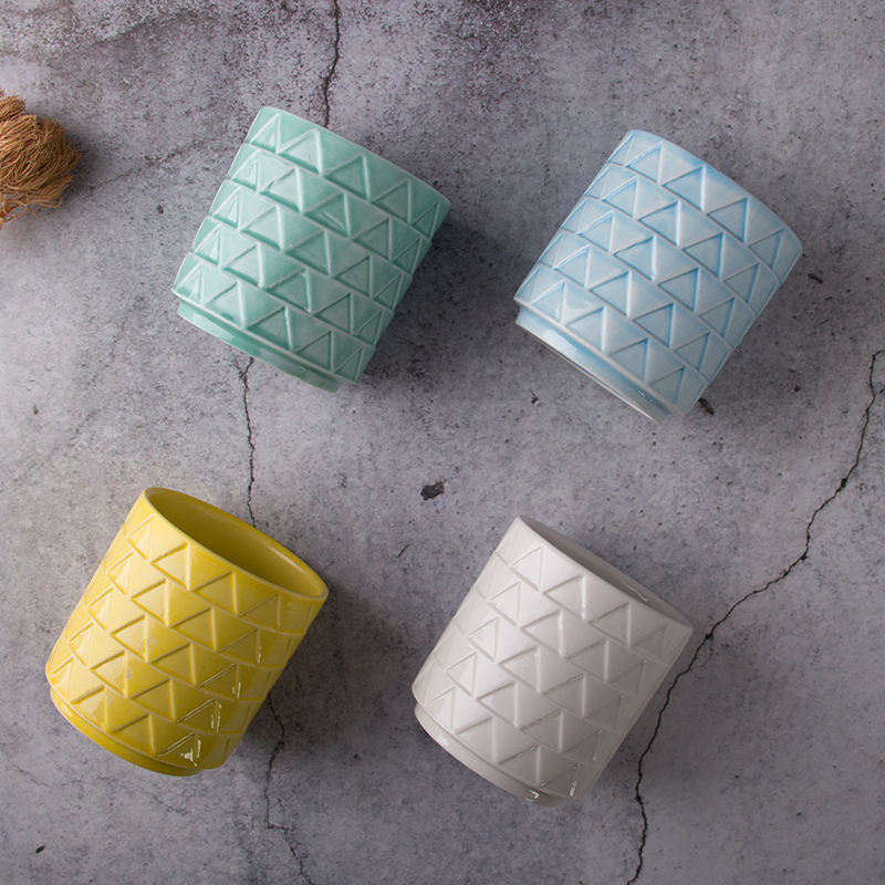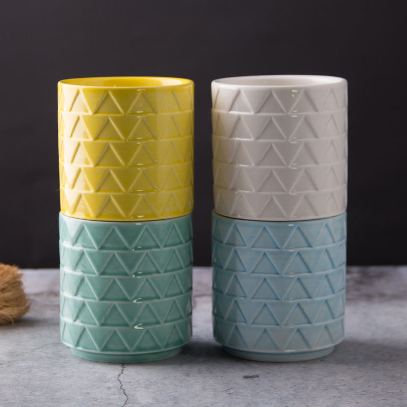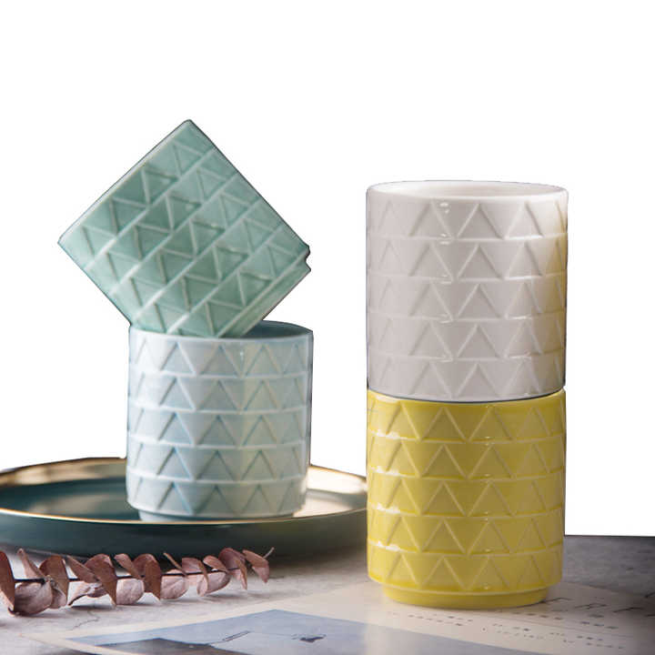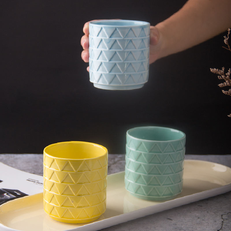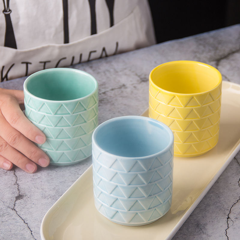 Commercio all'ingrosso di stile tazza di caffè di ceramica rilievo della creatività giapponese Medio Oriente con geometrica del triangolo tazza senza manico