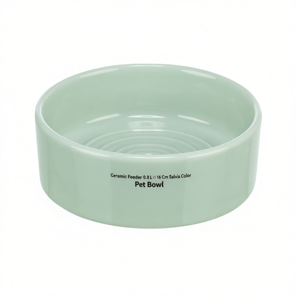 Ciotola per Animali Domestici in Ceramica, 0,8 L, 16 Cm, Colore Salvia