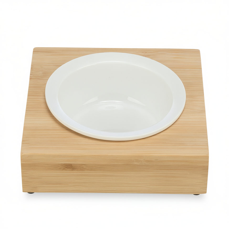 Ciotola in ceramica con base in bambù da 0,25 L e 12 cm di diametro per cani e gatti