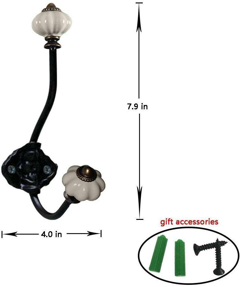 Ganci di ceramica di Ceramica del Ferro Zucca Ganci Da Parete Ganci per Dei Monili Cappotto di Cappello Sciarpa Della Decorazione Della Casa-2 Pack (Luce grigio)