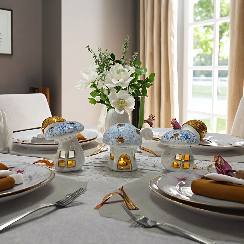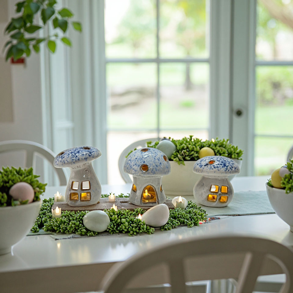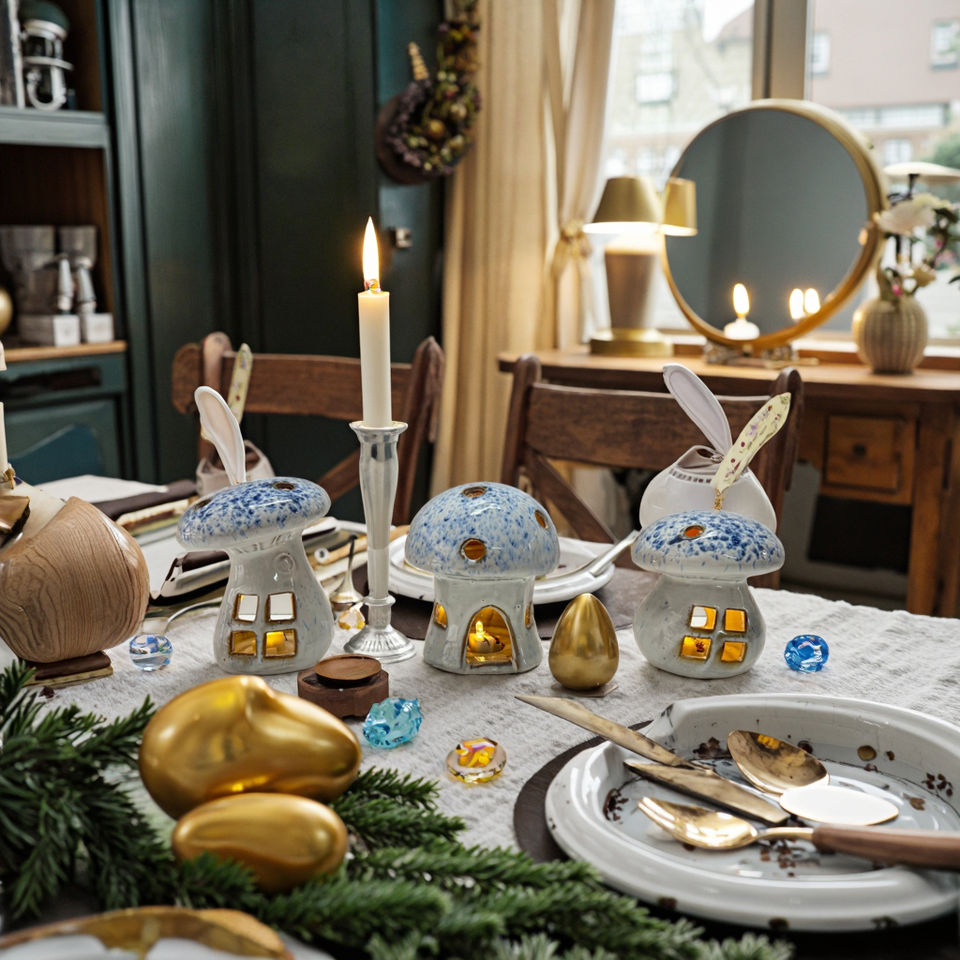 Casa in ceramica con LED o portacandele per decorazione da tavolo Tealight per oggetti decorativi primavera e pasqua