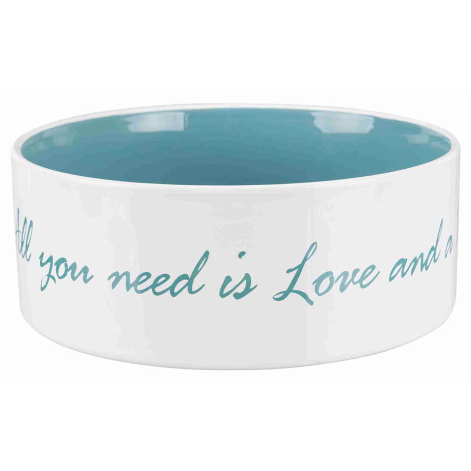 Ciotola in Ceramica per Animali Domestici 0,3l, Design a Cuore Blu Chiaro Crema, Ciotola per Cani e Gatti