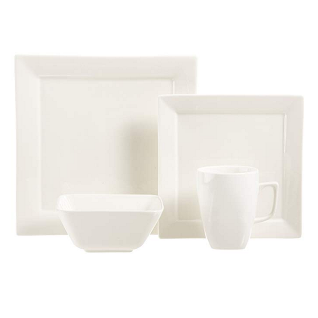 Servizio di set di stoviglie formali in porcellana di ceramica per 4, 16 pezzi classico piatto da portata quadrato bianco piatto da Dessert ciotola tazza