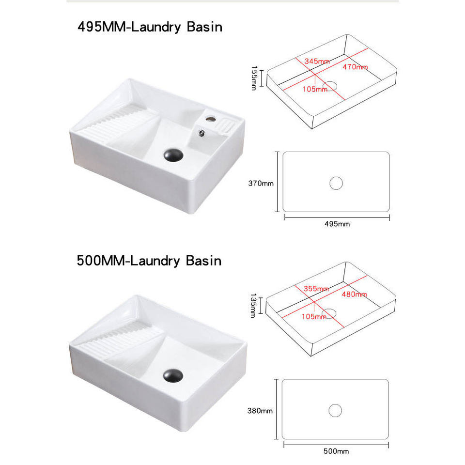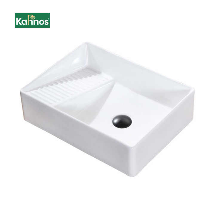 Lavabo quadrato in ceramica da appoggio per uso domestico, lavabo multiuso da balcone, lavello per lavanderia sopra la lavatrice, lavello per lavanderia domestica