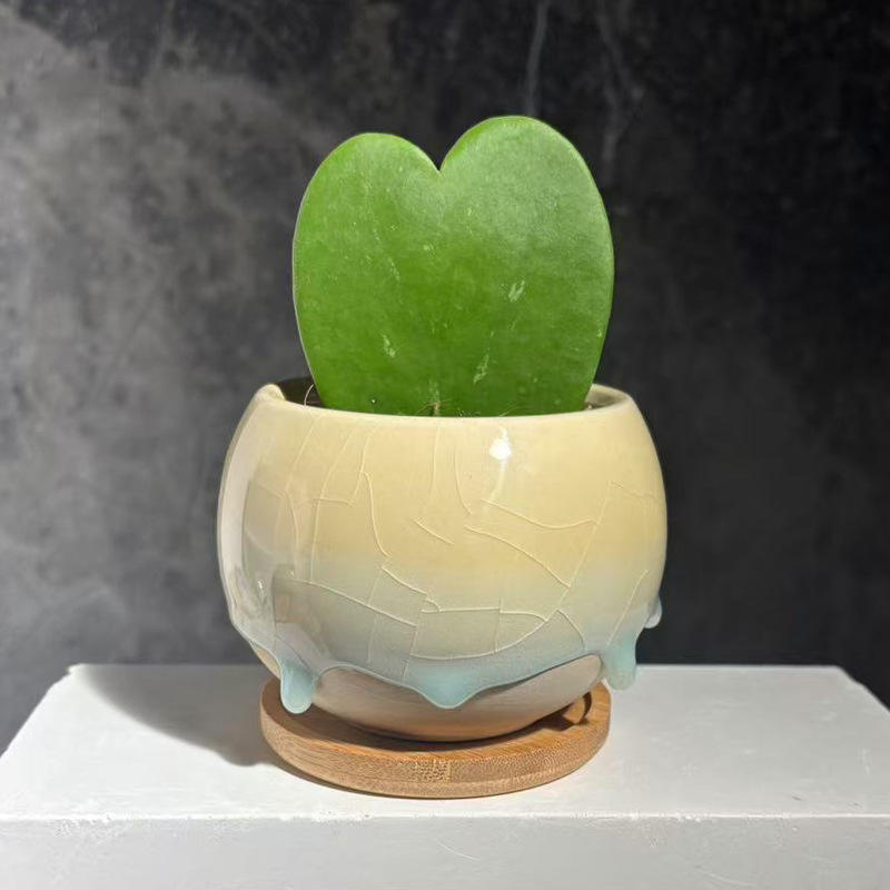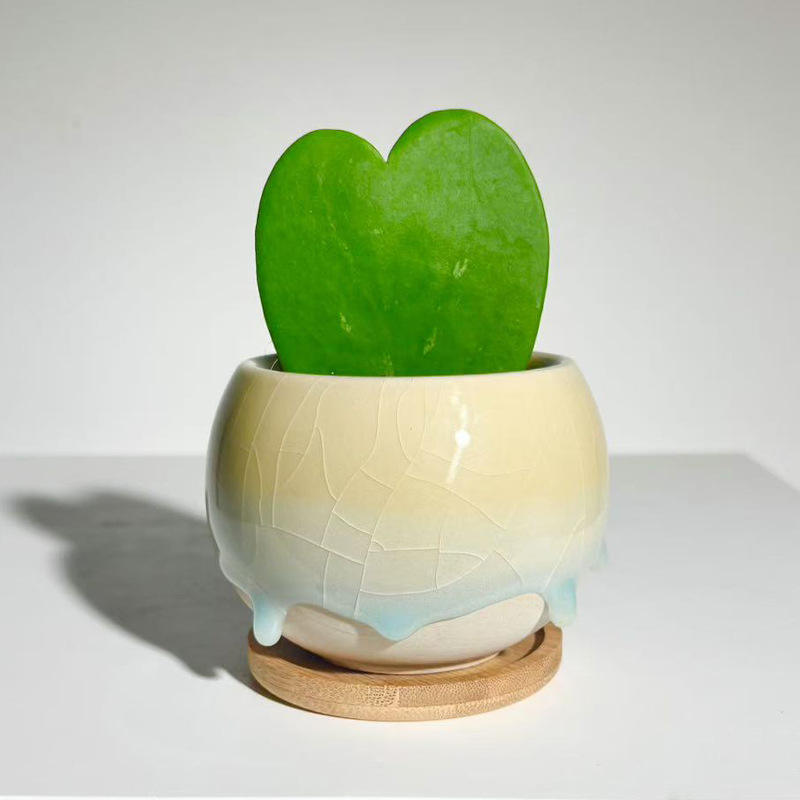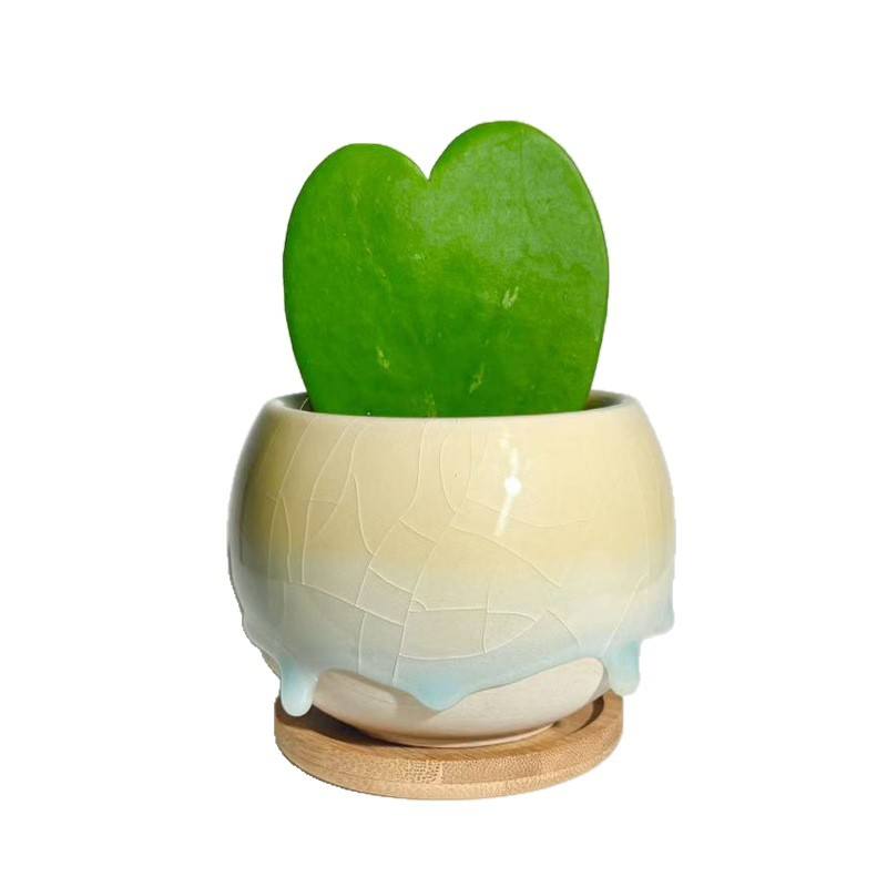 Vaso in Ceramica per Piante Grasse e Cactus con Effetto Craquelé e Smalto Fluido, Design Minimalista Semi-artigianale, Piccolo Vaso da Scrivania