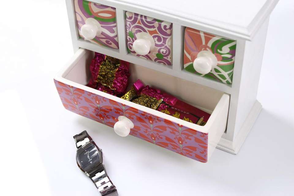 Di ceramica e di Legno Piccolo Scrigno di 6 Decorato A Mano Pittura In Rilievo Cassetti per Gioielli Organizzatore