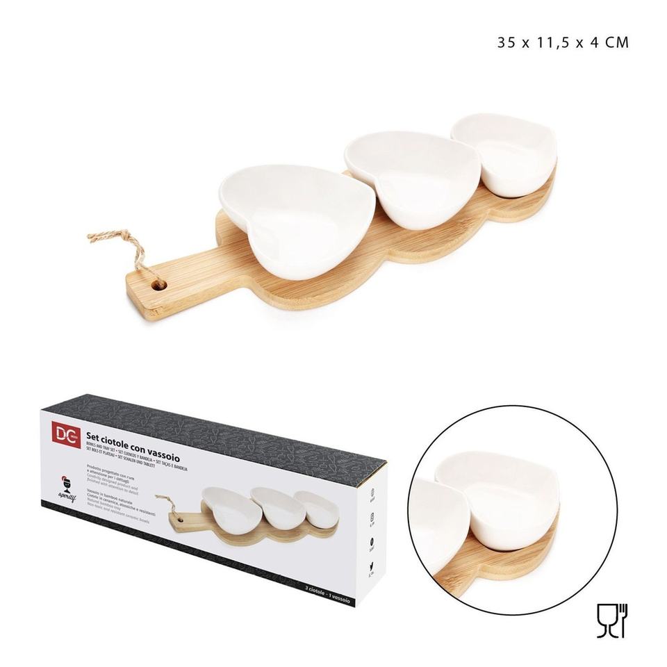 Ceramic bowls 3-piece set + tray 33x11x4cm - Kitchen accessories