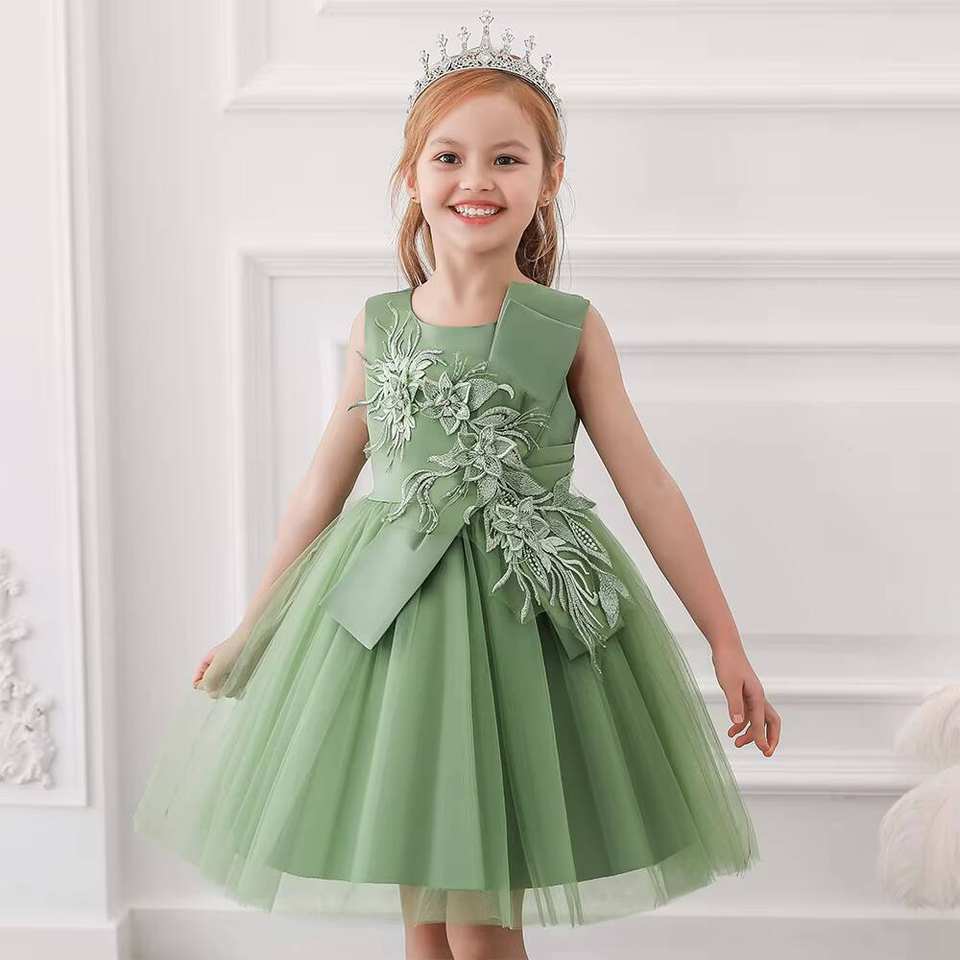 Abito da Cerimonia Principessa con Ricami, Vestito Formale da Ballo per Damigella d'Onore, Outfit Estivo per Bambine