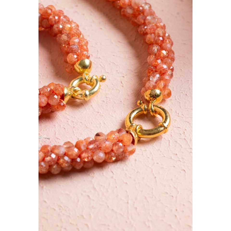 Set di Gioielli in Pietra del Sole Lavorato a Mano Certificato con Chiusura in Argento, Collana 48 cm, Bracciale 19 cm