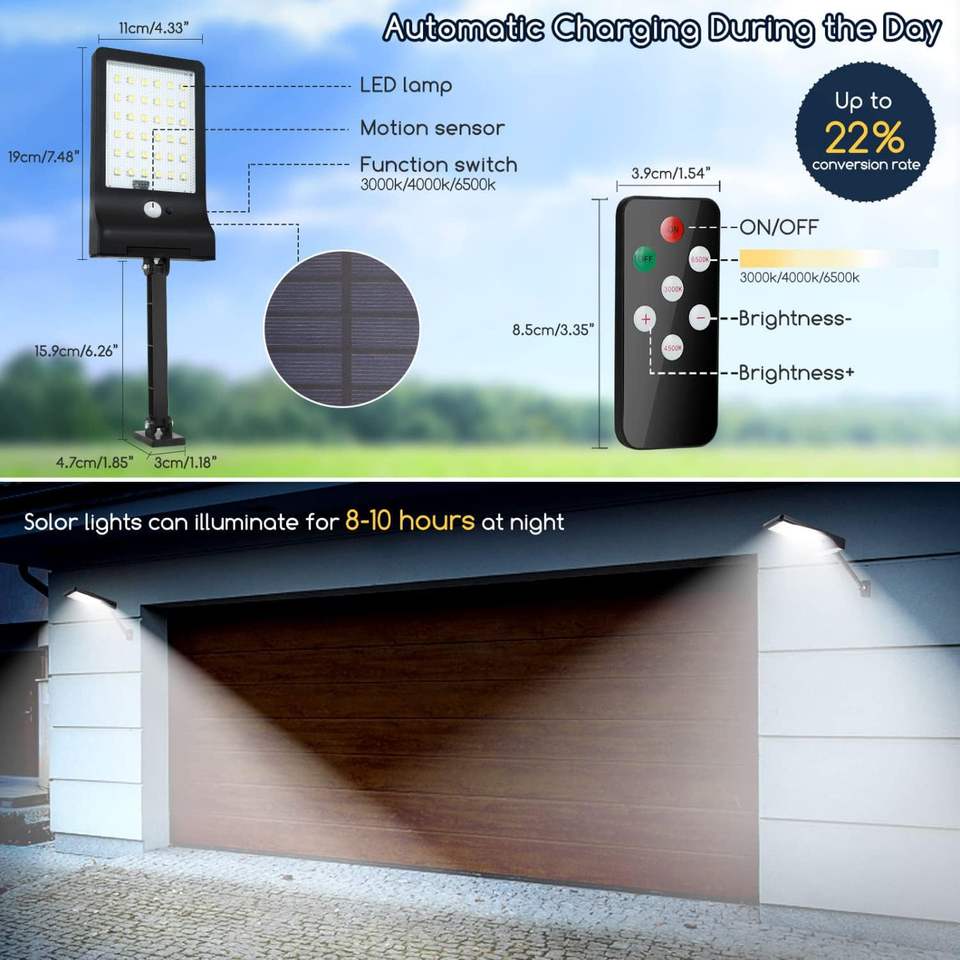 Certified Rohs IP65 Waterproof Outdoor Solar Lights Angle Adjustable Security Wall Light with Remote Control Solar Powered