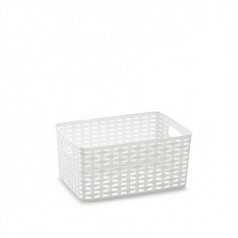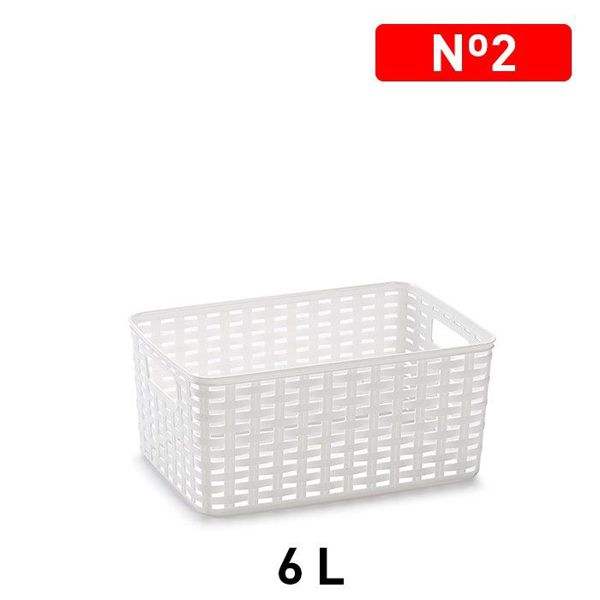 Cesta N2 6L 29 X 19.5 cm Bianca, Cestini Portaoggetti Stile Semplice, Impilabili, Rettangolari con Manico in Plastica, Design Funzionale Multiuso