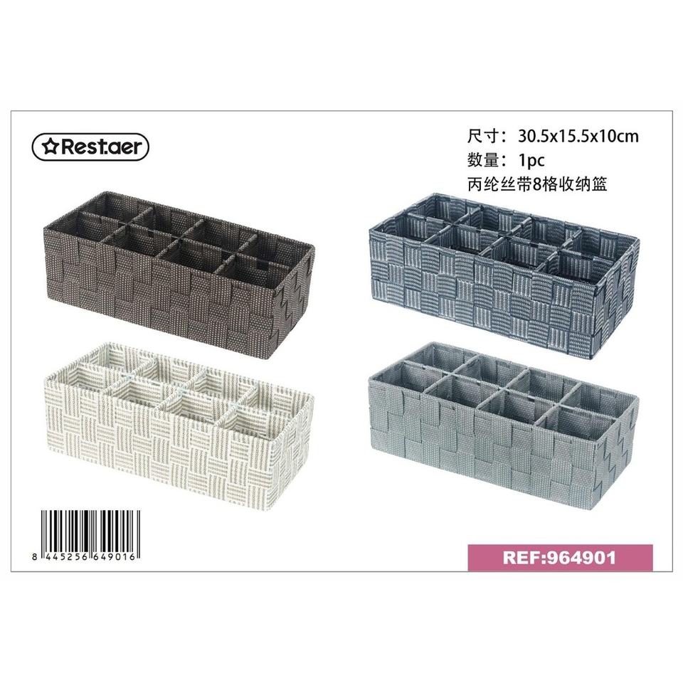 Cesta de almacenamiento con 8 compartimentos 30.5x15.5x10cm para organización del hogar