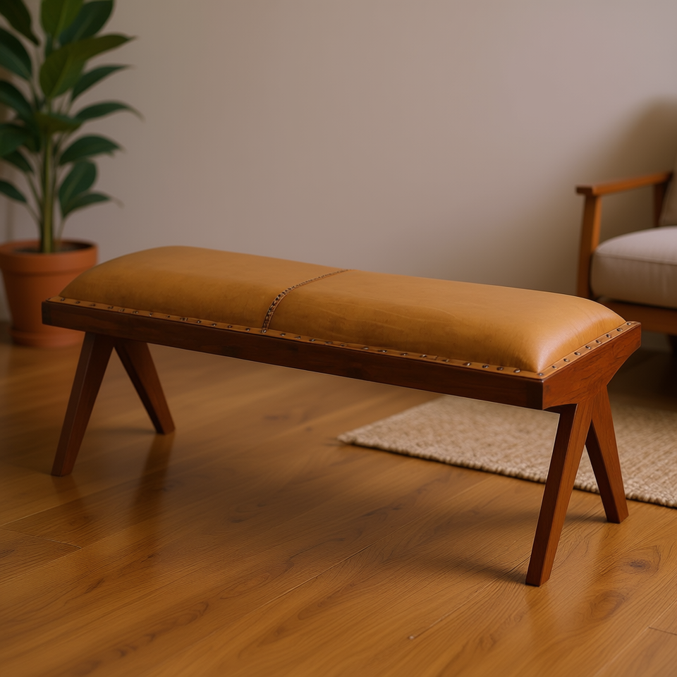 Chad Mid Century Modern Tan Leather Bench Living Room Furniture Durable Home Use