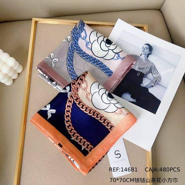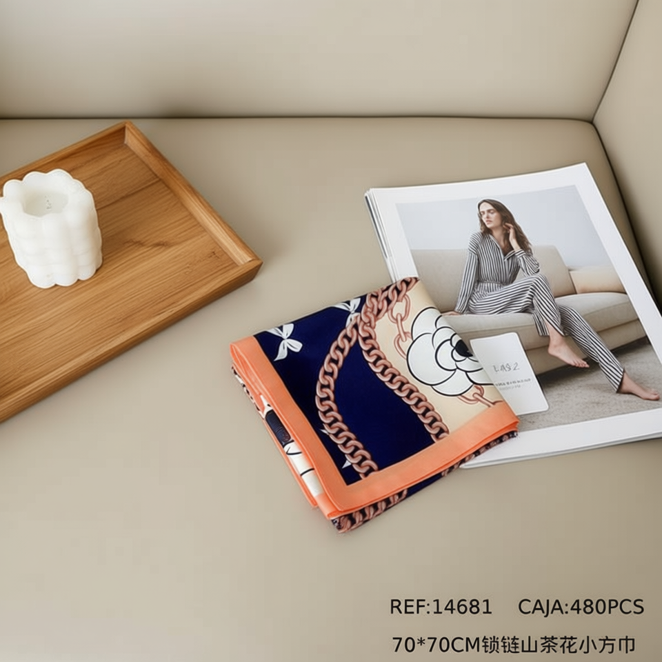 Foulard Quadrato Piccolo con Catena Camelia 70x70cm Accessorio Moda Donna