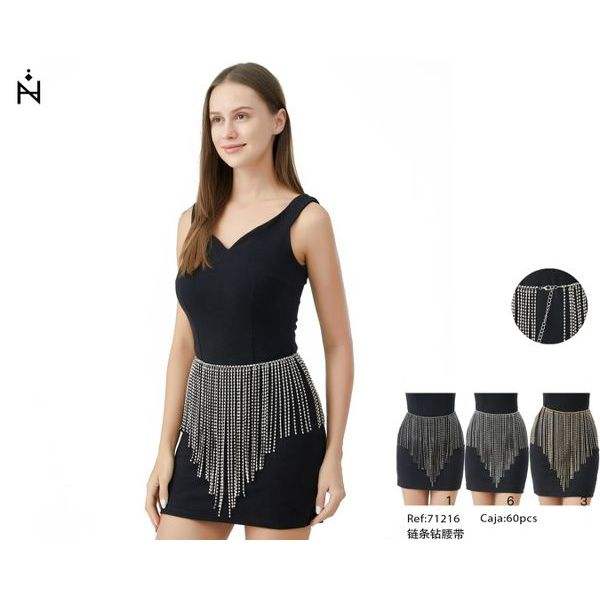 Cintura con strass a catena per donna, accessorio alla moda per vestiti e abiti da festa