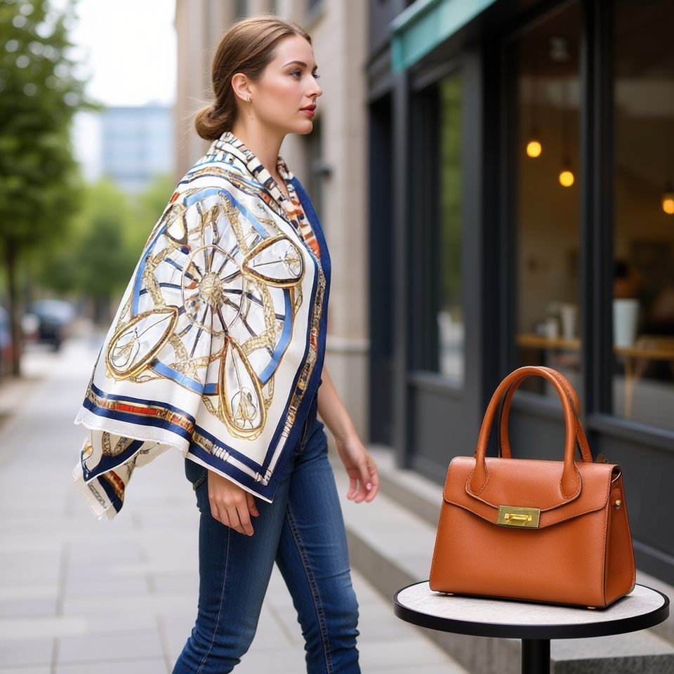 Foulard Quadrato Piccolo con Catena 70x70cm, Accessorio Moda Donna con Stampa Trendy