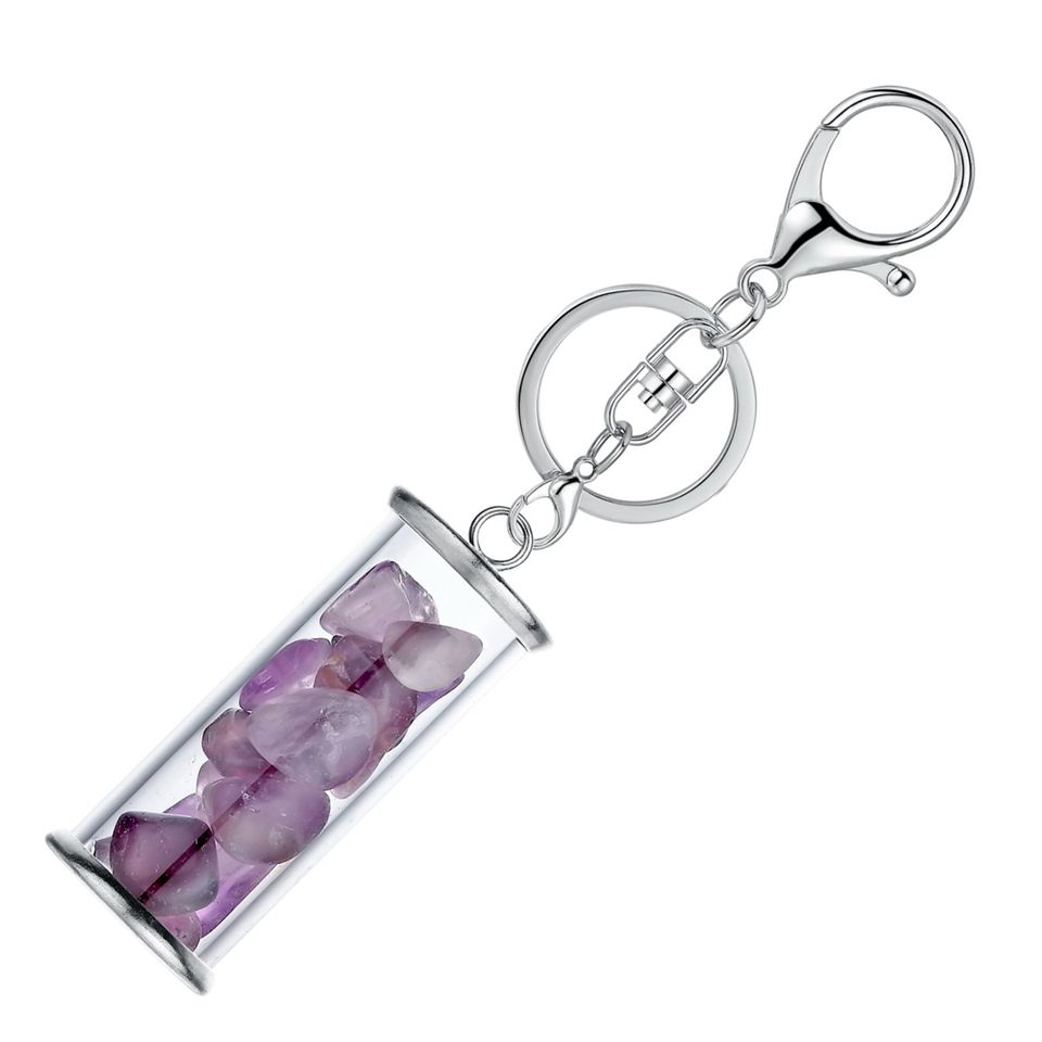 Chakra Healing Crystal Wishing Bottle Pendants Key Chain for Women Girls Tumbled Rock Wicca Stone Wish Reiki Energy