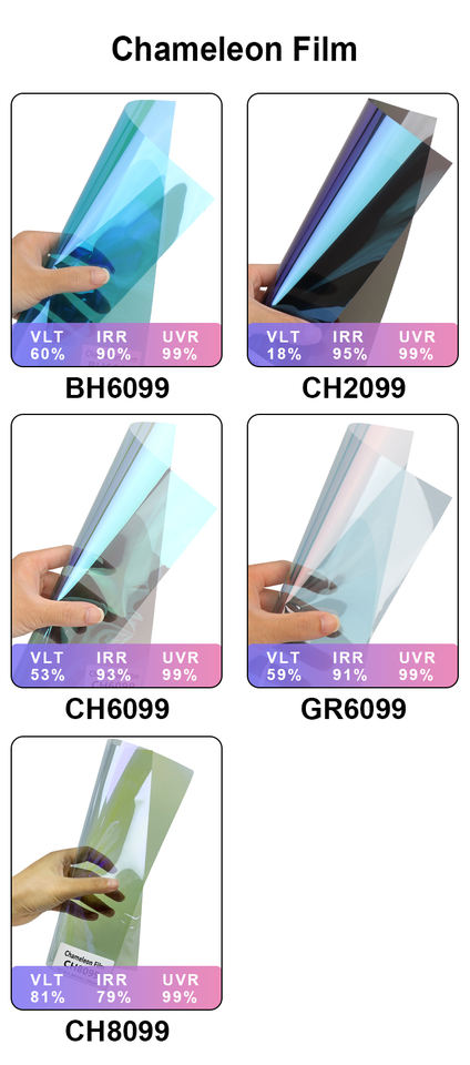 Pellicola Oscurante per Finestrini Auto Camaleonte in Materiale PET Autorigenerante Antigraffio Cambio Colore Protezione Solare