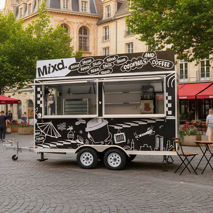 Chammp Carretto Hot Dog, Gelati, Caffè e Cibo su Ruote, Rimorchio Ristorante Mobile, Food Truck Elettrico per Hamburger in Vendita