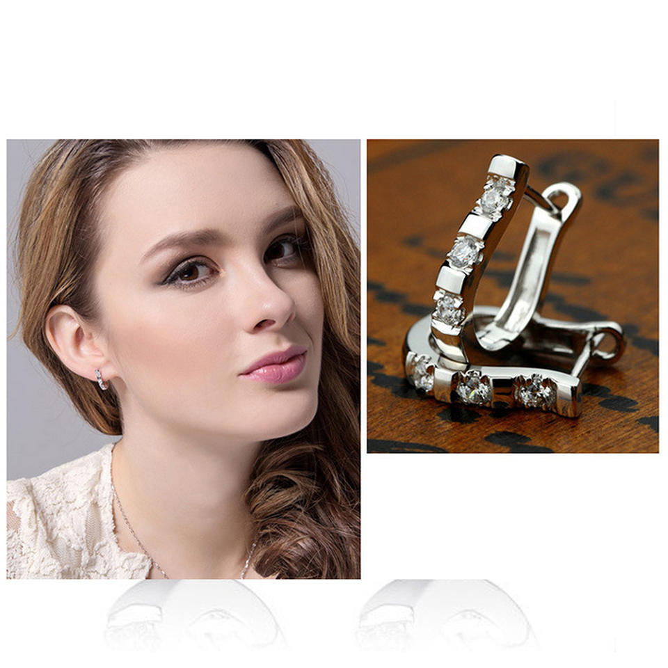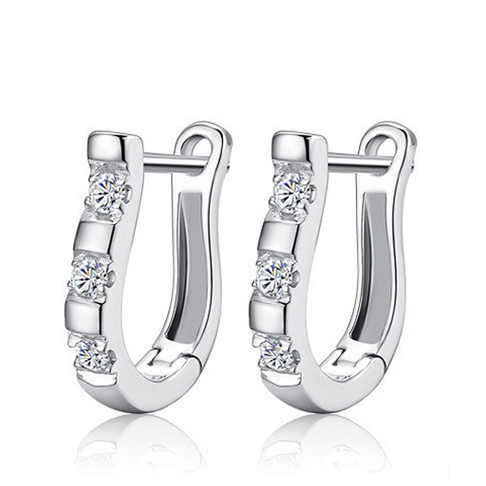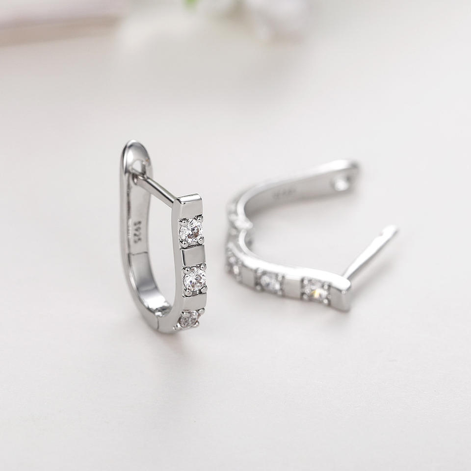 Champagne White 925 Silver Huggie Earrings With Crystal Rhinestone Channel Setting Classic Women's Everyday Wear Jewelry